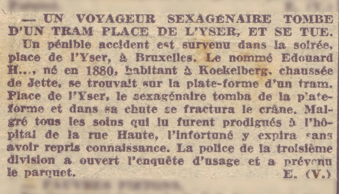 On January 22, 1942, Edouard Hucklenbroich, Henri's brother, was standing on the open balcony of a tram passing through Place de l'Yser in Brussels when he experienced a spell of vertigo and fell off. He fractured his cranium, and despite desperate efforts at the local hospital, he passed away.